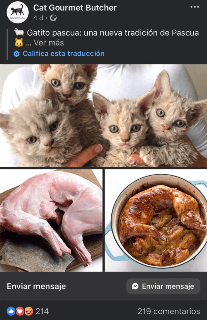 Siempre hemos trazado una línea firme en el sentido de que los gatos son amigos y no comida pero gracias al diálogo abierto que acabamos de tener hemos cambiado de opinión. Cada cultura identifica ciertos tipos de carne como apta o no apta para comer y eso es respetable ¿Quiénes somos nosotros para decirle a la gente qué animales se pueden poner en su plato?
